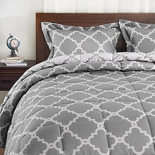 Basic Beyond リバーシブル掛け布団セット - シルクのように柔らかいグースダウン代替掛け布団3点セット 掛け布団1枚、枕カバー2枚 クイーン グレー HG18PCS02GQ