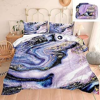 パープルマーブル掛け布団セット マーブル羽毛布団セット ゴールドパープルマーブル抽象寝具セット ツインサイズ 男の子/女の子向け 掛け布団1枚 枕カバー1枚 (パープル、ツイン)
