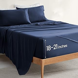 SLEEP ZONE 3ピース エクストラディープポケットシーツセット ラグジュアリーソフト 伸縮性ダブル起毛マイクロファイバー ボックスシーツ しわ防止 色あせ防止 お手入れ簡単 ベッドスプレッドセット (ネイビー フル)