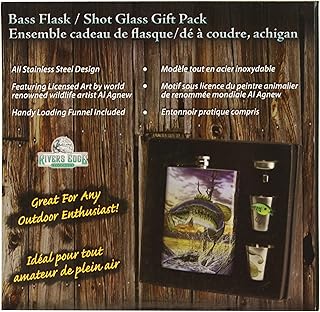 River's Edge Bass Design Stainless Steel Flask with Loading Funnel and Shot Glass by River's Edge Products
