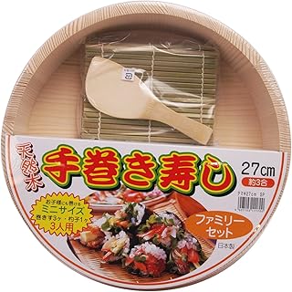 立花容器 寿司桶 手巻き寿司 セット 天然木 27cm 約3合 巻きす 3個 しゃもじ 1個 3人用 飯台
