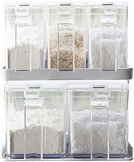 山崎実業(YAMAZAKI) 調味料入れ Sサイズ 3個 Lサイズ 2個 & ラック 6点セット ストッカー 容器 ケース 収納 スプーン キッチン タワー ホワイト 3341 2867 3SET