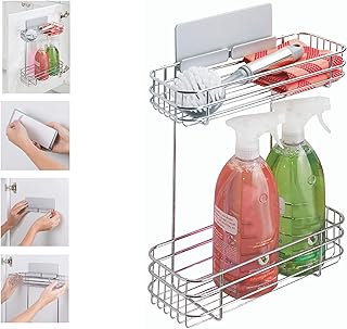 InterDesign レジ袋 ストッカー キッチン ドアハンガー バスケット 収納 はがせる 強力粘着 トレイ 2段式 AFFIXX クローム 03253EJ