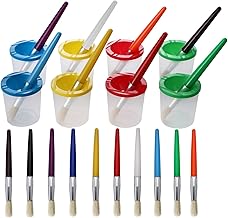 Maosifang 10 Pieces Assorted Coloured Paint Brushes Set in 10 Colours and 8 Pieces Spill Proof Paint Cups
