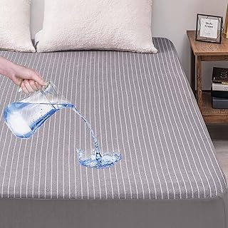 RECYCO 100%防水マットレスプロテクター フルサイズ スーパーソフト 通気性 マットレスパッドカバー 快適 & 保護 ノイズレス プレミアムコットンテリーベッドマットレスカバー (グレーストライプ)