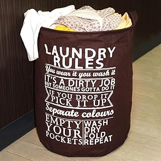 KriShyam® Brown Round Folding Laundry Rules Laundry Bag/Basket
