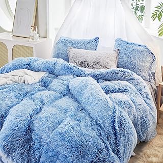 Uozzi Bedding 高級フラシ天シャギーフランネル1枚 羽毛布団カバー1枚 ツインフェイクファー 掛け布団カバー1枚 内側フィラーなし ジッパー開閉 暖かくソフト ブルーとピンク&ホワイトのファースタイル