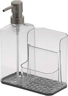 Spectrum Diversified ヘキサスポンジ&ブラシ キッチンオーガナイザー 詰め替え可能ソープポンプ、スポンジ&ディッシュ付き お手入れ簡単 シンク整理&ディッシュブラシホルダー 取り外し可能なベース付き クリア/グレー