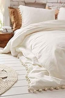 Flber ホワイト ポンポンフリンジ 掛け布団カバー ツインサイズ 68インチ x 90インチ (68インチ x 90インチ)