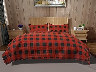 DOWN HOME バッファローチェックキルトセット オールシーズン ベッドカバー ベッドカバー 寝具 お揃いの枕カバー フル/クイーンサイズ ブラック/ディープレッド