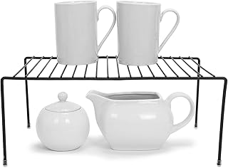 Smart Design キッチン収納棚ラック 傷防止脚付き Lサイズ スチール製 錆びにくい仕上げ カップ お皿 キャビネット パントリーの整理に キッチン (16 x 6インチ) ブラック