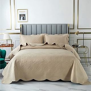 ベッドスプレッド マルチカバー キルト ベッドカバー ソファカバー ラグ シングル ダブル おしゃれ 無地 綿100% 枕カバー付き 寝具カバーセット 3点セット 優しい肌触り 四季通用 220x250cm ベージュ 洗える 牡丹 YUDSUKI