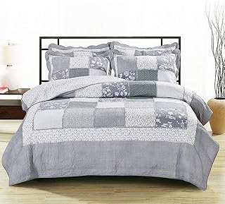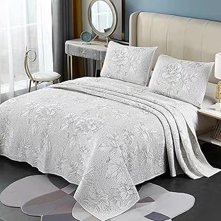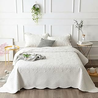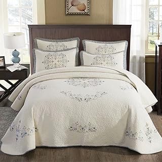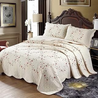 ベッドカバー おしゃれ 3点セット ケイーン キング用 ベッドスプレッド キルト 綿100% ソファカバー マルチカバー 姫系 花柄 刺繡 寝具カバーセット ピローカバー 四節適用 優しい肌触 プレゼント 丸洗い 264X234cm YKFN