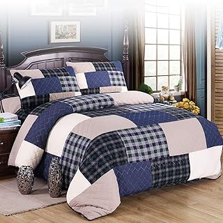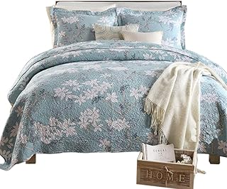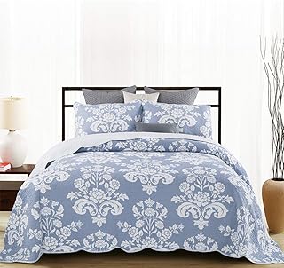 shamocamel ベッドカバー ベッドスプレッド 230×250cm マルチ カバー キルト おしゃれ ダブル 綿100% 枕カバー 寝具カバーセット 3点セット 四節適用 優しい肌触り-YT-C193 (ブルー)