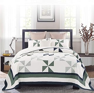 shamocamel ベッドカバー ベッドスプレッド マルチ カバー キルト おしゃれ ダブル 綿100% 枕カバー 寝具カバーセット 3点セット 四節適用 優しい肌触り-YT-C316 (風車, L)