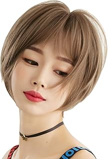 フルウィッグ ショート 前髪 3D グラデーション ヘアアレンジ 襟足 ボリューム カール ストレート つむじ 耐熱 自然 ボリューム 抜け感 (ミルクティーブラウン)