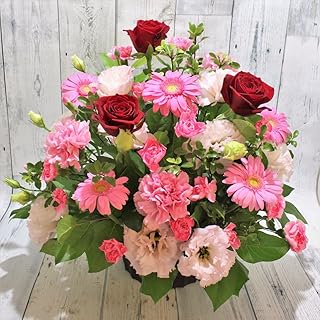 〖 フラワー ギフト ボリューム アレンジメント 〗 生花 季節のお花 おまかせ ピンク 赤 系 ボリューム お祝い お誕生日