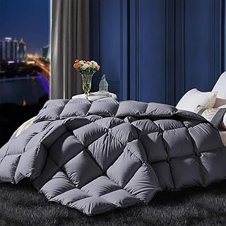 Dafinner オーガニックコットンキルトグレーグースダウン羽毛掛け布団 カリフォルニアキングサイズ 70オンス ミディアムウェイト 低刺激性 オールシーズン掛け布団 104x96インチ ライトグレー