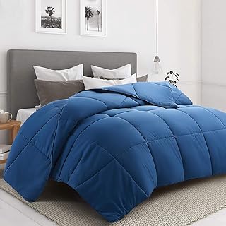 EASELAND(イーズランド) オールシーズン カリフォルニアキングサイズ ソフトキルトダウン 代替掛け布団 リバーシブル羽根布団 コーナータブ付き 冬 夏 暖かくてふわふわ 低刺激性 ネイビー 96 x 104インチ