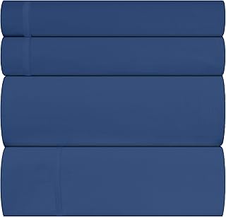 Infinite Weaves 300スレッドカウント カリフォルニアキングサイズ ベッドシーツ4点セット 綿100% ウルトラソフト サテン織り 寝具セット 深いポケット 豪華 低刺激性 色あせ防止 カリフォルニアキング4点セット クラシックブルー