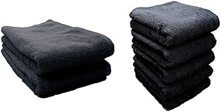 ワールドジャパン 高吸水 ホテルタイプ 大判バスタオル スーピマコットンカラー ブラック 2枚組 約70x140cm & 高吸水 ホテルタイプ フェイスタオル スーピマコットンカラー ブラック 5枚組【セット買い】