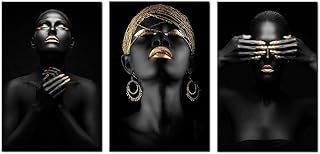 アフリカ系アメリカン プリント ウォールアート 装飾 ブラック ゴールド 女性 カバー 目 祈り ポートレート 写真 キャンバス プリント ポスター 金色の唇 釘 ネックレス 絵画 壁画 フレームなし (8.7インチ×10.6インチ)