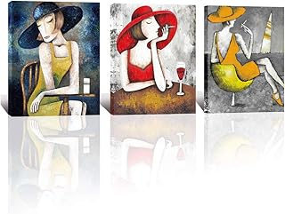 ファッション レディース 帽子 エレガントスタイル 絵画 アートワーク キャンバス ウォールアート ポスター ミニマリスト イエロー レッド キャンバス ペインティング プリント リビングルーム ピクチャー ベッドルーム 装飾 (レディレッド、12x16インチx3(30x40cmx3)