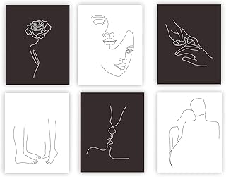 ミニマリスト ライン アート プリント 6枚セット (8 x 10インチ 抽象 ライン アート ポスター モダン ブラック ホワイト 女性 顔 キャンバス ウォールアート 自宅 オフィス 壁 (額なし)