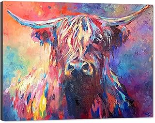 農場牛 キャンバス ウォールアート カラフル 動物 落書き ハイランド 牛 ポスター 油絵 キャンバス プリント ストリート アート 農家 牛 モダン フレーム アートワーク リビング 寝室 バスルーム ホーム オフィス 装飾 幅40インチ x 高さ30インチ