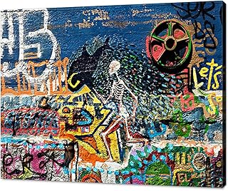 Yatsen Bridge Street グラフィティ ウォールアート スケルトン 男性 ウォーキング キャンバス プリント バンクシー 壁装飾 カラフルな要素 ポスター プリント キャンバス プリント ピクチャー グラフィティ アート すぐに掛けられる 額入り(幅60.96cmx高さ45.76cm)