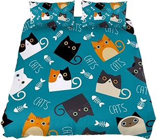 掛け布団カバー3点セット シングル 猫柄 魚 かわいい 寝具カバー 布団カバー 枕カバー 敷き布団カバー 洋式 和式兼用 通気性 四季通用 ファスナー開閉 ベッド用 柔らかい 洗える 子供用 大人用150×210