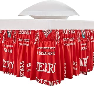 MEILA クリスマスデコレーション ベッドスカート 取り付け簡単 ダストラウンドラッフルレッドスカート ツイン/フルサイズベッド用 16インチドロップ