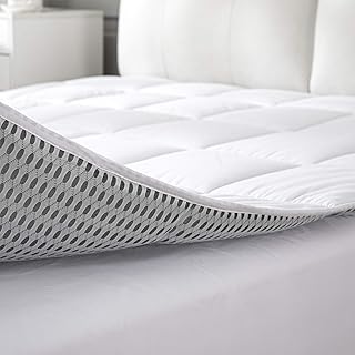 冷却マットレスパッド フルサイズ コットン100%のカバーとメッシュシェルアンダーレイ付き スノーファイバー充填 ソフト 温度調節 プレミアムマットレスプロテクター 洗濯機洗い可能