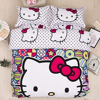 Casa コットン100% キッズ寝具セット ガールズ ハローキティ 掛け布団カバーと枕カバーとボックスシーツ、4ピース、フルサイズ
