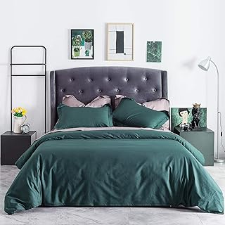 SUSYBAO 掛け布団カバー3点セット 100%天然コットン クイーンサイズ ダークグリーン 寝具セット 無地掛け布団カバー1枚 隠しジッパータイ付き 枕カバー2枚 高級 ソフト 通気性 軽量 お手入れ簡単