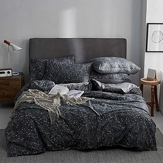 BBSET 掛け布団カバー3点セット 100%コットン 掛け布団カバー 超ソフト お手入れ簡単 シンプルスタイル 寝具セット ツインサイズ Queen(90*90in) ブラック