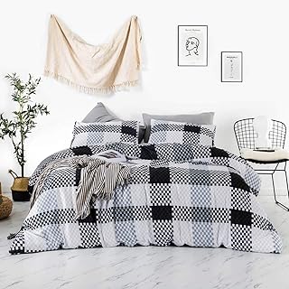SUSYBAO 掛け布団カバー3点セット エジプト綿100% キングサイズ ブラック&ホワイト チェック柄 チェック柄 寝具セット グリッド幾何学模様の掛け布団カバー1点 ジッパータイ付き 枕カバー2点 高級品質 超ソフト 耐久性