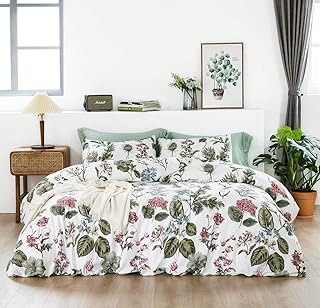 ECOCOTT 掛け布団カバー3点セット 100%天然コットン ジッパー付き掛け布団カバー1枚 枕カバー2枚 ウルトラソフト お手入れ簡単 快適 シンプルスタイル 寝具セット (花柄、キング)
