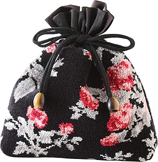 ローラアシュレイ(Laura Ashley) 「シェニール」 巾着 ロージズ ブラック 約19×3(マチ)×20cm RUA44572 Bk