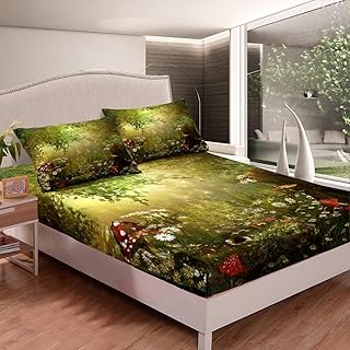Erosebridal マジックフィットシーツ マッシュルーム フィットシーツ ツインXLサイズ デイジーリーフ 枝 夕暮れ 自然 寝具セット トリッピースタイル おとぎ話 テーマ ベッドカバー ホームルーム 装飾