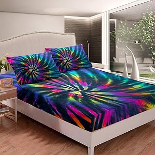 Erosebridal 絞り染め ボックスシーツ カラフルな絞り染め シーツセット 水彩風 渦巻き ベッドカバー 子供用 抽象柄 プリント寝具セット クイーンサイズ 枕カバー2枚付き