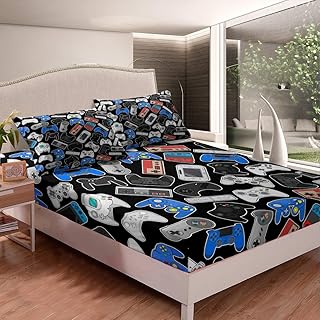Erosebridal ティーン ゲームパッド フィットシーツ ビデオゲーム寝具セット フルサイズ 子供 男の子 女の子 ユース モダン ゲーマー コンソール ベッドシーツ プレーヤー ゲームジョイスティック ベッドカバー ベッドルーム装飾 枕カバー2枚付き