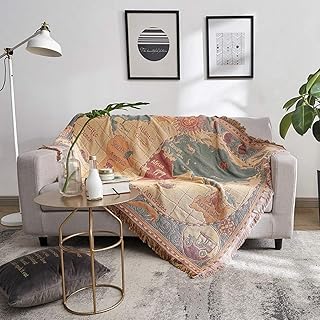 マルチカバー フリンジ 地図柄 イエロー 肩掛け 北欧風 ソファカバー ベッドカバー ブランケット 洗濯可能 インテリア 両面使用可能 地図柄 フリンジ 綿製品 多機能 ソファーカバー ライドピンク ラグ 130*180cm 北欧 ソファーカバー