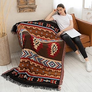 コットン スロー ブランケット 手編み 装飾ブランケット 軽量 ソフト 快適 ベッドやソファに 50インチ x 60インチ セージストライプ タッセル付き