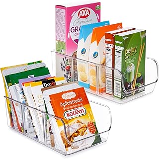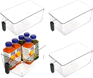 4個セット 冷蔵庫オーガナイザー容器 積み重ね可能 冷蔵庫オーガナイザー 冷凍庫/キッチン/カウンタートップ/キャビネット用 透明プラスチックパントリー収納ラック ハンドル付き食品収納容器 長さ14.5インチ