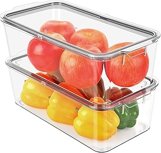 Fullstar 冷蔵庫オーガナイザー容器 2個パック - 冷蔵庫オーガナイザー容器 冷凍庫オーガナイザー 積み重ね可能 冷蔵庫ストレージ容器 冷蔵庫ストレージコンテナ クリアパントリー整理とストレージビン