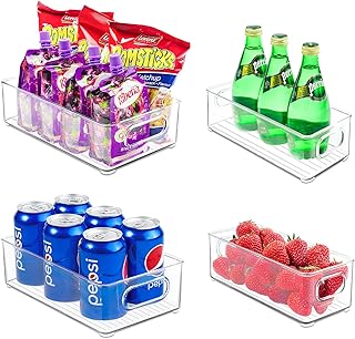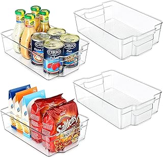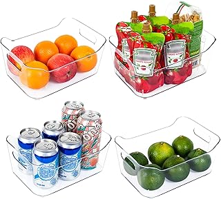 iPEGTOP 冷蔵庫オーガナイザー容器 積み重ね可能 冷蔵庫 食品 パントリーオーガナイザー クリアプラスチック ハンドル付き 冷凍庫 キッチン カウンタートップ キャビネット用 4個セット