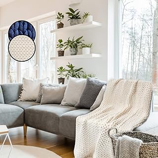 チャンキーニットブランケット スロー ホワイト – 極厚 暖か & コージーホワイトスローブランケット – ラグジュアリー 抜け毛なし 編組ケーブルニット チャンキーブランケット – 洗濯機洗い可 チャンキーニット ブランケット糸