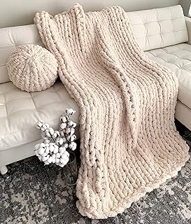 PENKERMAR チャンキーニットブランケット シェニール織 ピュアナチュラル手織りブランケット とても柔らかく快適 ベージュ 40インチ x 40インチ
