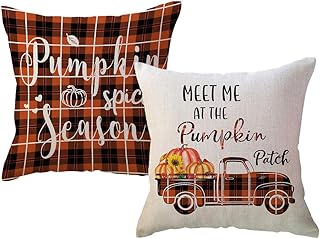 ULOVE LOVE YOURSELF パンプキン スパイスシーズン 秋 装飾用クッションカバー バッファローチェック 格子柄 パンプキン トラック クッションカバー 18 x 18インチ ファームハウス 枕カバー 2枚セット ソファ カウチ用